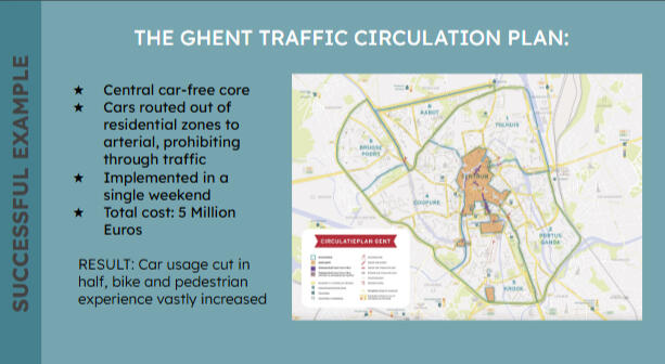 We must admit a fundamental flaw at the heart of our urban design over most of the past century. At its most basic level, we have built our city so that cars can travel everywhere, at all times, via the most direct route.Instead, we must begin strategically controlling the movement of cars, so that long-distance travel between neighborhoods (or further) happens on designated streets of our choosing and residential streets are protected from them.This is not hypothetical or untested. Consider the city of Ghent, Belgium:
