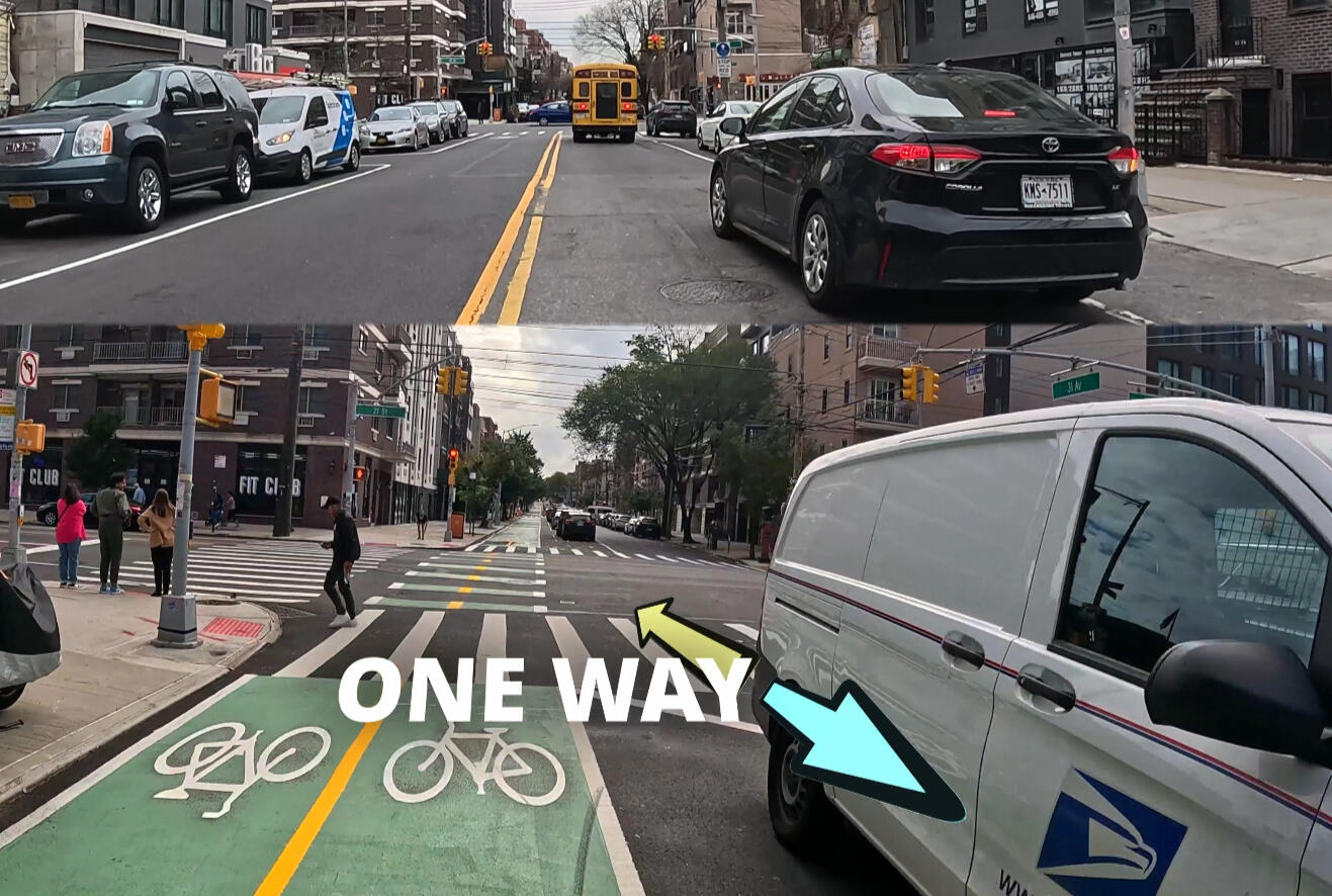 This process has already been implemented in small measures in NYC, most famously on the wildly successful 31st Ave, which reduced a 2-way street (for cars) down to 1, and then strategically switched the direction of travel every few blocks.