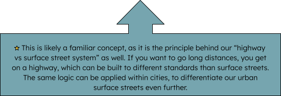 The end result is a “Bike Boulevard” with very small amounts of motor traffic besides the occasional resident or delivery. This enormously benefits those that live on and near it. Suddenly, the residential Neighborhood Street is far quieter, easier to traverse, and more enjoyable for walkers and micromobility riders. This is how quality of life can be drastically improved for city residents.